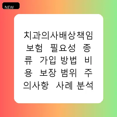 치과의사배상책임보험은 치과의사들이 직업적 위험으로부터 자신을 보호하기 위해 필수적으로 가입해야 하는 보험입니다. 이 보험은 환자에게 발생할 수 있는 손해에 대한 법적 책임을 보장해 주며, 의료 과실이나 부주의로 인한 사고가 발생했을 때 경제적 부담을 덜어줍니다. 치과의사들은 환자와의 신뢰 관계를 유지하고, 법적 분쟁을 예방하기 위해 이 보험을 고려해야 합니다. 이 글에서는 치과의사배상책임보험의 필요성, 종류, 가입 방법, 비용, 보장 범위, 주의사항 및 사례 분석에 대해 자세히 살펴보겠습니다.